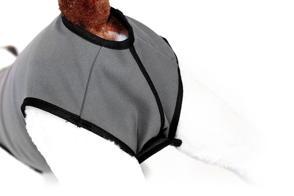 Zusätzlich bietet das Modell RH plus eine eingenähte Pipi Klappe, die sich mit nur einem Handgriff öffnen und schließen lässt. Das bedeutet, der BonniBody muss für das Gassigehen nicht zwangsläufig ausgezogen werden.