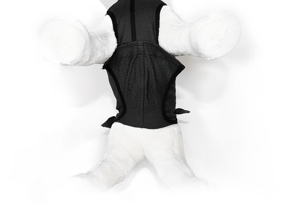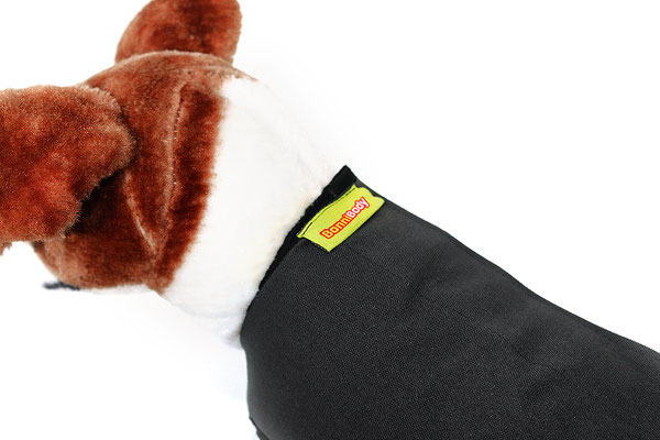 Der BonniBody - "Medi-Body" Modell RH UNIversal. Das gesamte Hinterteil kann weggeklappt werden, dies bedeutet einfacheres Gassigehen. Auch hier muss der Body nicht ausgezogen werden. Das hintere Teil wird nach vorne weggeklappt um eine Verschmutzung zu verhindern.